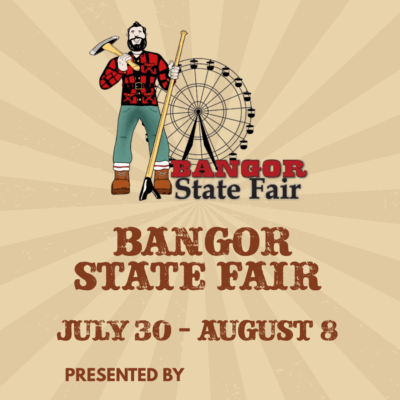 Bangor State Fair 2026 More Info Jul 30 Thursday 4:00 PM – 10:00 PM Jul 31 Friday 4:00 PM – 10:00 PM Aug 1 Saturday 12:00 PM – 10:00 PM Aug 2 Sunday 12:00 PM – 8:00 PM Aug 3 Monday 4:00 PM – 10:00 PM Aug 4 Tuesday 4:00 PM – 10:00 PM Aug 5 Wednesday 4:00 PM – 10:00 PM Aug 6 Thursday 4:00 PM – 10:00 PM Aug 7 Friday 4:00 PM – 10:00 PM Aug 8 Saturday 12:00 PM – 10:00 PM